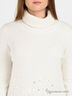 Повседневное платье из мягкого вязаного полотна приталенного силуэта с воротом - гольфом из рибаны. Длинный прямой рукав. Полочка декорирована пайетками и стразами.