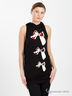 Оригинальное платье без рукавов свободного покроя. Модель декорирована капюшоном и принтом в виде бантиков.