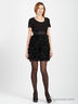 Оригинальное платье с короткими рукавами и округлым вырезом горловины. Модель необычного дизайна приталенного покроя и застежкой на молнию на спине.
