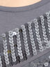Облегающее платье с коротким рукавом и округлым вырезом горловины. Модель декорирована отделкой рюшами и пайетками.