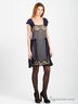 Очаровательное платье приталенного покроя с короткими рукавами. Модель декорирована кружевами и оригинальным дизайном.