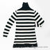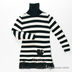 Стильное трикотажное платье с воротником гольф и длинными рукавами для девочки. Ворот и манжеты рукавов оформлены в рубчик. Низ изделия декорирован ажурной вставкой, также платье декорировано паетками.