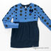 Замечательное трикотажное платье для девочки. Изделие с длинными рукавами и округлым вырезом горловины. Застежка на пуговицу. Верх платья декорирован принтом в горох, значок на полочке отстегивается.