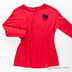 Яркое стильное трикотажное платье для девочки. Округлый вырез горловины и длинные рукава. Изделие декорировано простроченными складками, ворот - из простроченной ленты.