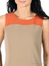Детали: округлый вырез горловины, широкие лямки, фигурные вытачки, скрытая застежка на молнию на спинке, имитация передних карманов