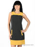 Детали: округлый вырез горловины, широкие лямки, фигурные вытачки, скрытая застежка на молнию на спинке, имитация передних карманов