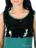 Детали: округлый вырез горловины, широкие лямки, скрытая застежка на молнию на спинке, фигурные вытачки, лиф декорирован пайетками