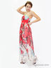 Платье в пол с регулируемыми бретельками. Лиф с круглым вырезом, собран защипами, по спинке идёт широкая резинка. Модель дополнена цветочным принтом. Отличный вариант для создания романтичного образа.