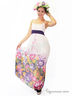 Платье в пол с регулируемыми бретельками. Лиф с круглым вырезом, собран защипами, по спинке идёт широкая резинка. Модель дополнена цветочным принтом. Отличный вариант для создания романтичного образа.