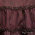 Округлый вырез горловины, спереди застежка на три пуговицы. Расклешенная юбка, вставка из ткани контрастной расцветки. К юбке пришиты три ряда рюш. Низ рукава присборен на резинку. На подоле нашивка с цветком.