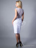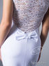 Нарядное платье приталенного силуэта с подрезом. Спина - полупрозрачный гипюр с отделкой элегантным бантом. Прекрасный вариант для модных женщин, желающих подчеркнуть свою индивидуальность и хороший вкус.