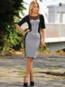 Комбинированное платье приталенного силуэта с короткими рукавами и округлым вырезом горловины. Модель приталенного кроя, без застежки. Декорировано изделие полупрозрачной гипюровой вставкой сеткой спереди.