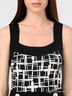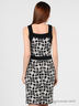Детали: округлый вырез, без рукавов, втачной пояс украшен пуговицами, яркий оригинальный принт