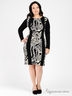 Детали: круглый вырез; длинный рукав; застегивается на молнию сзади; шлица; вставки с контрастным принтом