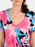Детали: оригинальный вырез с декоративным запахом, короткий рукав, сборки, принты
