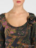 Детали: округлый вырез горловины декорирован объемным цветком, длинный рукав присборен на высокую манжету