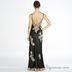 Платье вечернее Голливуд макси, приталенное, расклешенное к низу. Тонкие атласные брители, регулируемые, декорированы бисером. Длина в пол. Лиф V образный с небольшим запахом. Рельефные выточки по линии груди. Вырез спины ниже лопаток. Застежка молния в боковом шве. Материал верха – шелк атлас, подкладка – тонкий атлас. Отделка платья выполнена кружевом, расшитым цветочным орнаментом. Расшито пайетками, бисером, прозрачными камушками. Спереди имеется разрез, элегантно отделанный кружевом.