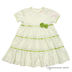 Расклешенное летнее платье. Короткие рукава, круглый вырез. Сзади застегивается на пуговицу. Украшено атласными ленточками и цветами.