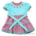 Детали: округлый вырез горловины, короткий рукав-фонарик, застежка на спинке; по боковым швам вшиты ленты, завязывающиейся на спинке; контрастный подол