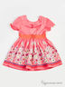 Великолепное платье приталенного силуэта из хлопковой ткани. Округлый вырез горловины, короткий рукав, втачной пояс, оригинальный рисунок.