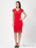 Эффектная модель платья, на которую Вы обратите внимание. Изделие полуприлегающего силуэта, выполнено в модной расцветке. Рукава короткие, V-образный вырез горловины.