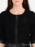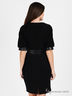Детали: округлый вырез горловины, укороченный рукав посажен на манжету, застежка на молнию на полочке, отрезной пояс, брошка отстегивается