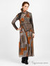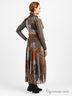 Оригинальное платье из эластичного, плотного трикотажа и тонкой, легкой ткани. V-образный вырез горловины. Длинные облегающие рукава с фактурными вставками из более плотного трикотажа. Отрезной пояс дополнен оригинальной вставкой, идентичной вставкам на рукавах, с накладным карманом. Длинная расклешенная юбка с подкладкой из слабоэластичной тонкой ткани. Платье дополнено легким шарфом. Будьте неповторимой!