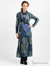 Оригинальное платье из эластичного, плотного трикотажа и тонкой, легкой ткани. V-образный вырез горловины. Длинные облегающие рукава с фактурными вставками из более плотного трикотажа. Отрезной пояс дополнен оригинальной вставкой, идентичной вставкам на рукавах, с накладным карманом. Длинная расклешенная юбка с подкладкой из слабоэластичной тонкой ткани. Платье дополнено легким шарфом. Будьте неповторимой!