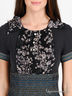 Детали: округлый вырез горловины, короткий рукав, отрезной лиф декорирован пришитым шифоновым элементом с пуговицами