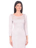 Платье трикотажное выполнено из вискозной пряжи, плотное. Силуэт сильно приталенный. Полочка и спинка оформлены ажурной кокеткой в виде сетки. Рукав укороченный.