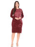 Платье трикотажное полуприталенного силуэта. Полочка выполнена жаккардовой вязкой в виде декоративного принта. Вырез горловины округлый.