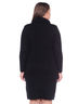 Платье трикотажное выполнено фактурной вязкой "шашечки", плотность средняя. Силуэт полуприталенный. Изделие имеет выточки по спинке. Вырез горловины округлый, ворот в виде "хомута". Рукав длинный.