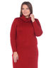 Платье трикотажное выполнено фактурной вязкой "шашечки", плотность средняя. Силуэт полуприталенный. Изделие имеет выточки по спинке. Вырез горловины округлый, ворот в виде "хомута". Рукав длинный.
