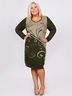 Платье трикотажное полуприталенного силуэта. Полочка выполнена жаккардовой вязкой в виде декоративного принта. Вырез горловины округлый.