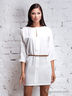 Платье с рукавами 3/4 и округлым вырезом горловины. Модель прямого кроя выполнена из качественного, легкого материала привлекательной расцветки. Отличный вариант на каждый день. Талия обозначена поясом.