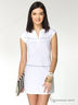 Платье длины мини из натурального хлопкового материала. Модель с короткими рукавами и отложным воротником. Дополнено изделие планкой с застежкой на кнопки. Отличный вариант для вашего гардероба.