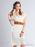 Очаровательное платье приталенного кроя с короткими рукавами и глубоким вырезом декольте. Фантазийная, резная вязка из хлопка. К платью прилагается сорочка на бретелях в качестве подкладки в тон изделия.