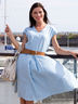 Стильное платье с короткими рукавами и V-образным вырезом горловины. На спинке выполнена широкая эффектная шлевка для ремня. Модель приталенного покроя. Отличный вариант для повседневной носки. Пояс в комплекте.
