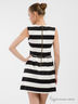 Платье с короткими рукавами, округлым вырезом горловины и пышной юбкой. Изделие выполнено в модной расцветке "полоска". Отличный вариант на каждый день.