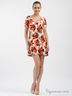 Платье приталенного покроя с короткими рукавами и округлым вырезом горловины. Изделие выполнено из принтованной ткани контрастной расцветки. Отличный вариант на каждый день.