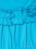 Детали: округлый вырез горловины, короткие рукава фонарики, отрезная расклешенная юбка с оборкой, завязки на спинке. Полочка декорирована рюшами.