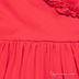 Платье прямого кроя с расклешенной юбкой и длинным рукавом. V-образный вырез. По боковым швам пришиты ленты, завязывающиеся в бант на спинке. Вырез горловины, манжеты и подол украшены рюшами и паетками. Подол так же декорирован оборками.