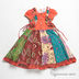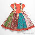 Детали: застежка на скрытую молнию на спинке, короткий рукав, имитация застежки на пуговицы на полочке, декоративные ленточки завязываются в бантики по бокам, юбка с разнообразными принтами и блестками