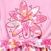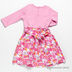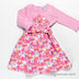 Платье прямого кроя с расклешенной юбкой застегивается на три пуговки на спинке. Рукава с декоративными отворотами. По линии талии пришиты шлевки и вставлен поясок, завязывающийся на спинке. Полочка декорирована нашивкой и стразами.