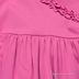 Платье прямого кроя с расклешенной юбкой и длинным рукавом. V-образный вырез. По боковым швам пришиты ленты, завязывающиеся в бант на спинке. Вырез горловины, манжеты и подол украшены рюшами и пайетками. Подол так же декорирован оборками.