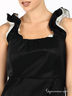 Нарядное отрезное платье, приталенного силуэта из тонкой неэластичной ткани с эффектом лоска. Застегивается на левом боку на молнию. Вырез горловины-каре. Оригинальные бретели присборены на резинку. Верх полочки слегка присборен в складочки. Верх спинки дополнен резинкой. Тонкий шелковистый подклад.