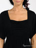 Отрезное платье из приятного на ощупь, меланжевого трикотажа. Вырез каре. Широкие цельнокроеные рукава. По линии отреза лифа вшита резинка. Полочка украшена вышивкой в тон изделия и декоративными складками.