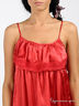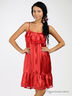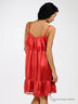 Слегка расклешенное атласное платье. Тонкие регулируемые бретельки. Лиф и подол украшены кружевом в тон изделия.