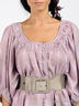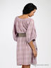 Легкое платье свободного покроя. Круглая горловина, украшена сборками. На полочке планка-застежка на кнопках. Широкие рукава реглан с манжетами на кнопках.