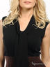 Детали: застежка на молнию на спине, округлый вырез горловины дополнен широкой шелковистой лентой, низ дополнен разрезами